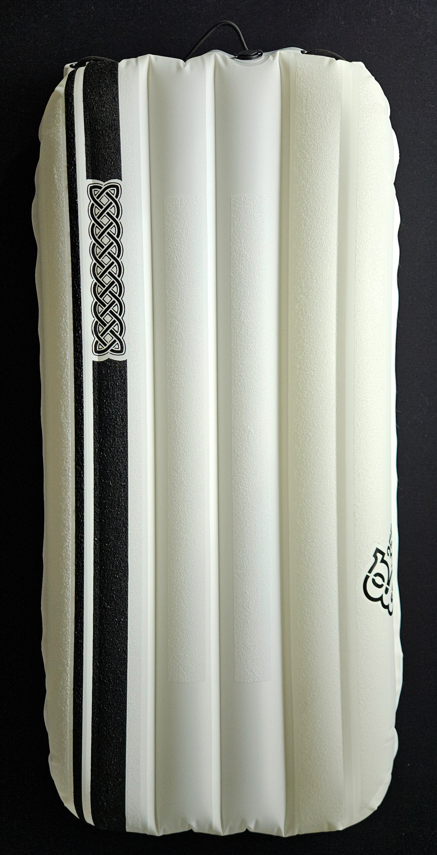Scott lives in California and is a very experienced mat surfer. When we discussed what Scott was after. He was pretty clear he wanted a mat to fill out the top end of his quiver for bigger and hollower waves. We settled on a 200/70 Nouveau Racer as the base design is much gunnier than most mats. The 200d deck and wheezy venting adds to stability. Scott has also gone for a bungee to add a leash. Leashes are a hassle on mats but there are times when they really are a helpful back up when the alternative is a swim in to rocks in heavy surf to get them back.